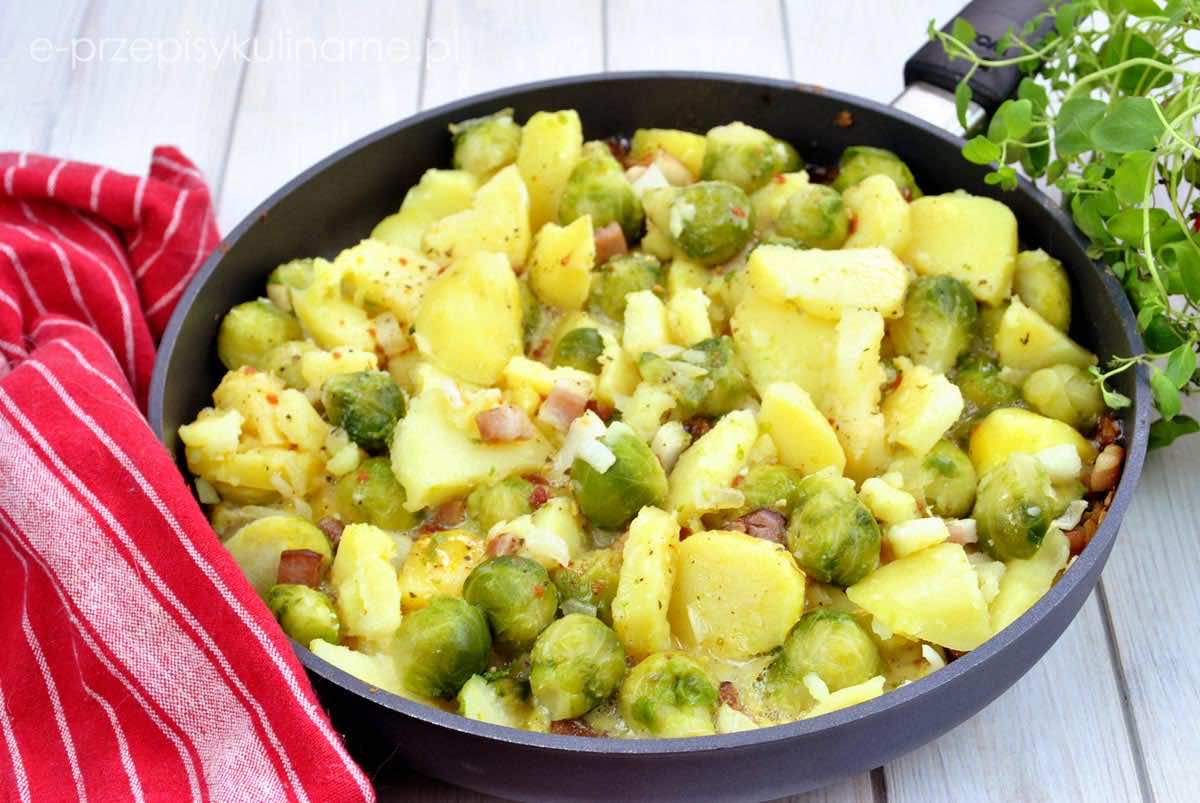 Smażone ziemniaki z brukselką i jajkami
