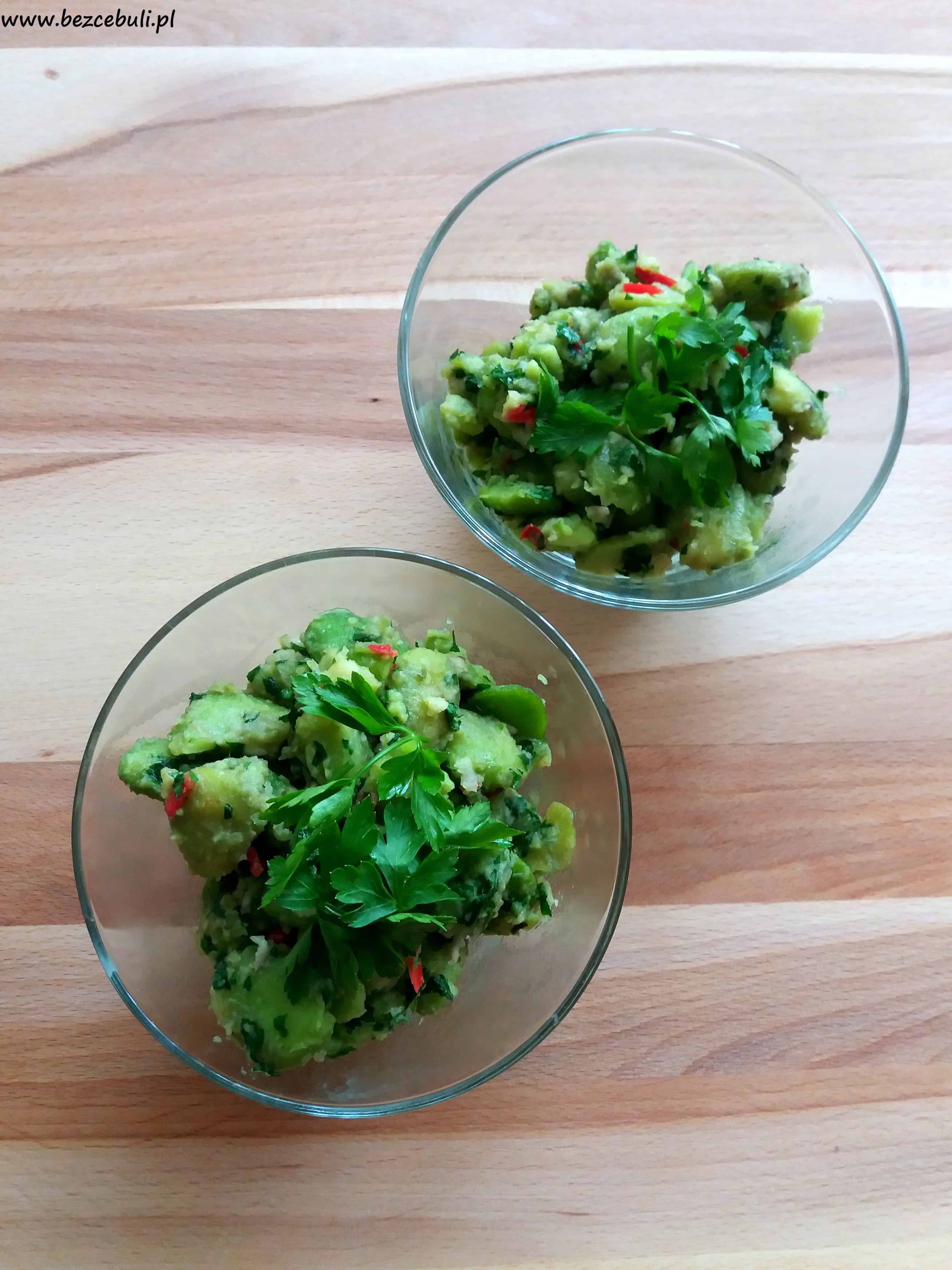 4. Następnie dodajemy obrany bób oraz natkę pietruszki.