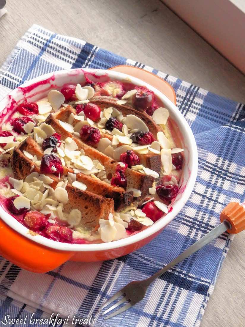 Śmietankowy pudding chlebowy z suszonymi owocami i płatkami migdałów :) Mniam <3