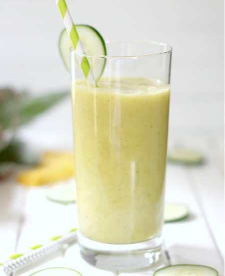 Sok szpinakowo-ogórkowo-czosnkowy z mlekiem acidofilnym to prawdziwa bomba białkowo-wapniowa. Białko pochodzi w nim z produktu zwierzęcego, a to powoduje,że jest dobrze przyswajane przez organizm.