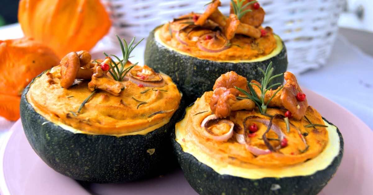 Powitanie jesieni: dynia, leśne grzyby, chrupiąca cukinia z nutą rozmarynu i pikantnym pieprzem. Smacznie, zdrowo, kolorowo.
