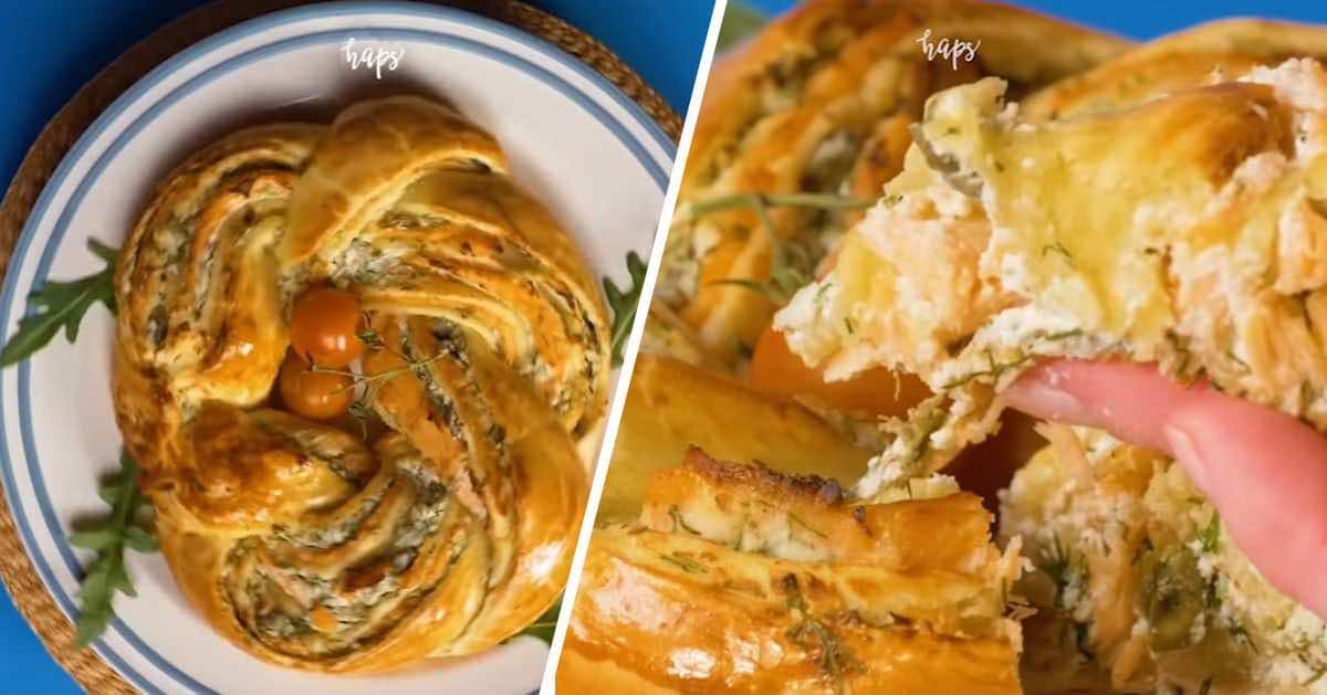 Świetny przepis na przekąskę według Haps. Wieniec drożdżowy z łososiem – smacznego! :)