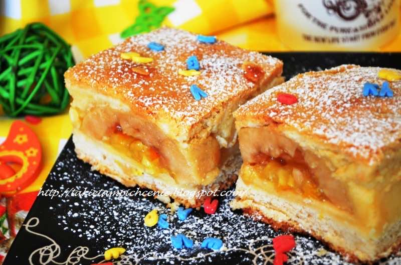 Pomysł na tę szarlotkę powstał, kiedy znalazłam w jednym z marketów, świetny dżem pomarańczowy z kawałkami owoców( razem ze skórką )