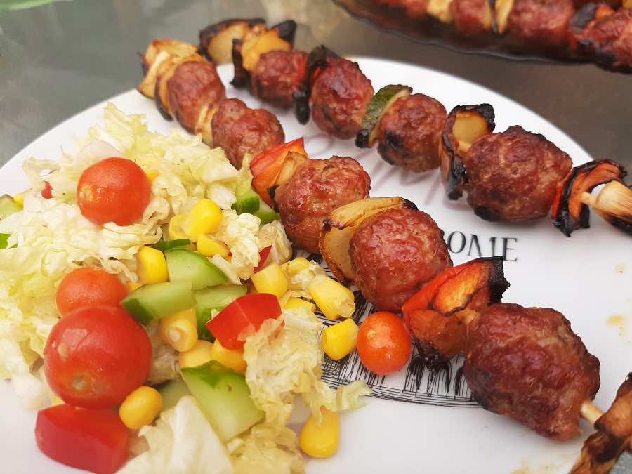 Ciekawa propozycja dla miłośników grilla – szaszłyki z mięsem mielonym. Aromatyczne, kolorowe i pyszne :)