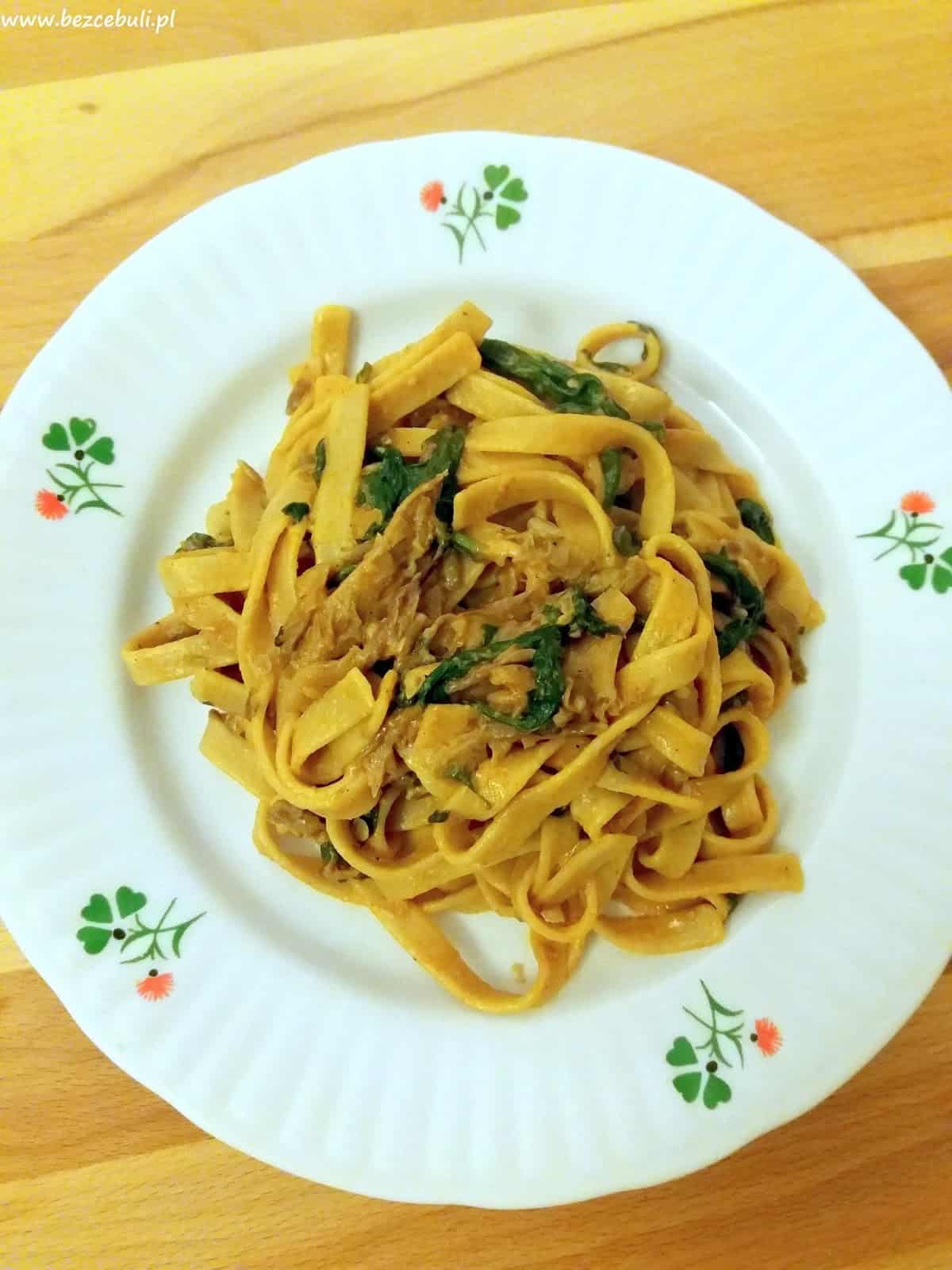 Tagliatelle z boczniakami i szpinakiem
