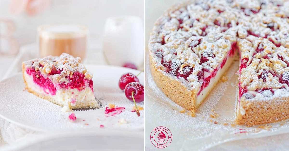 Kruche ciasto, masa sernikowa, maliny i kruszonka – to wszystko tworzy idealne połączenie.