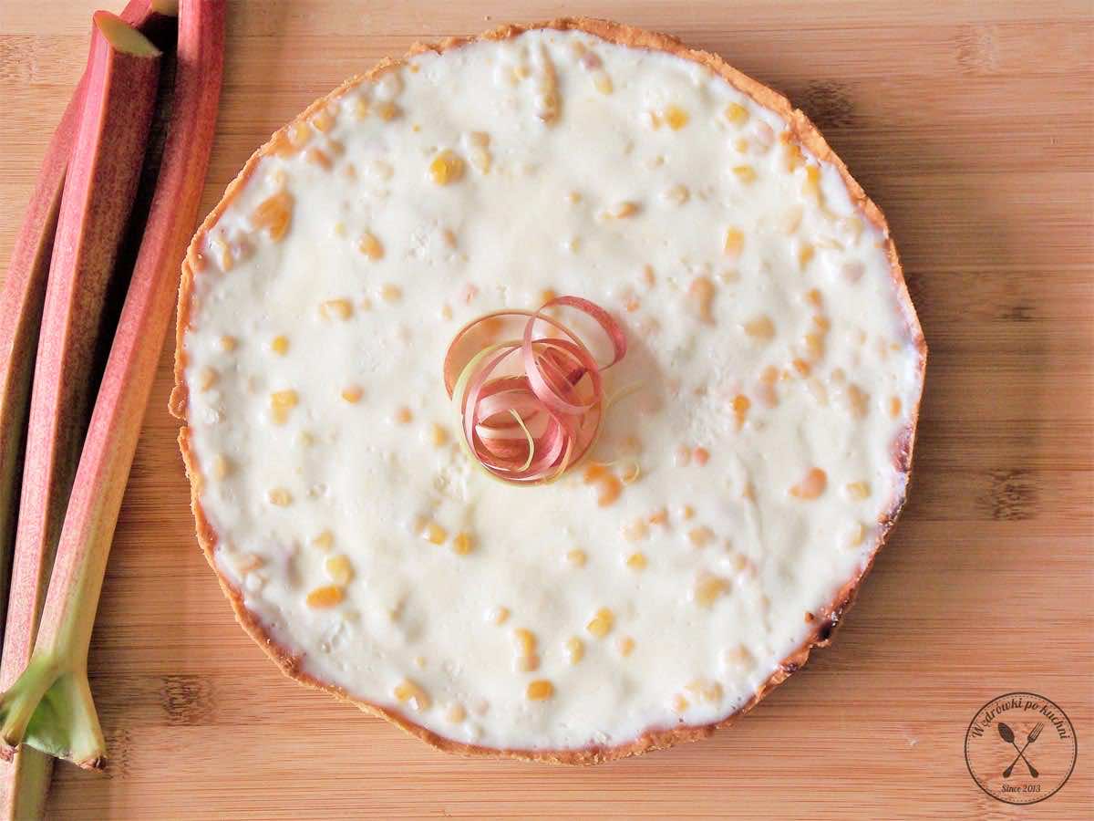 Rabarbar – głównie kojarzy się z babcinym kompotem serwowanym w upalny dzień czy drożdżowym wypiekiem w postaci bułek lub ciasta drożdżowego z kruszonką. Na rabarbarowy sezon co roku czekam z utęsknieniem i dobrze go wykorzystuję. Dziś zapraszam Was na pyszną tartę. Kwaskowy rabarbar połączony z kremowym serkiem, dopieszczony słodką polewą z dodatkiem skórki pomarańczowej. Wspaniałe połączenie smaków.