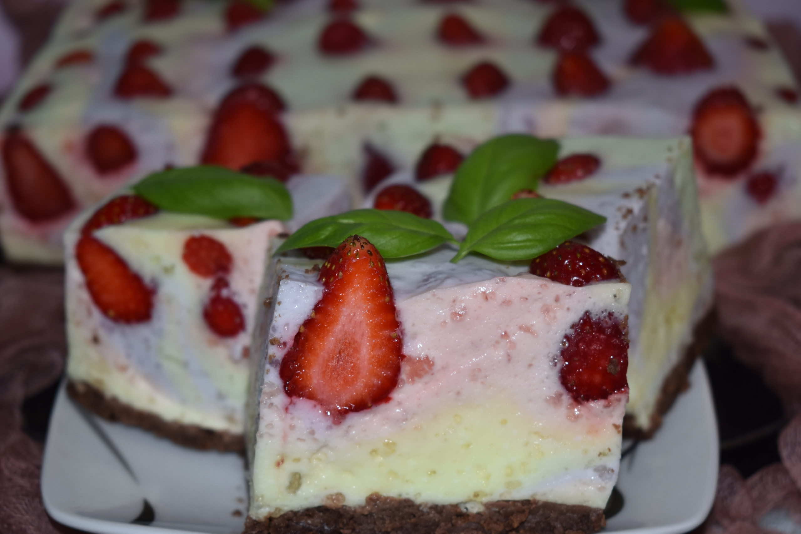 Delikatne, leciutkie ciasto na bazie jogurtów. Ciasto bez pieczenia w sam raz na upalne dni.