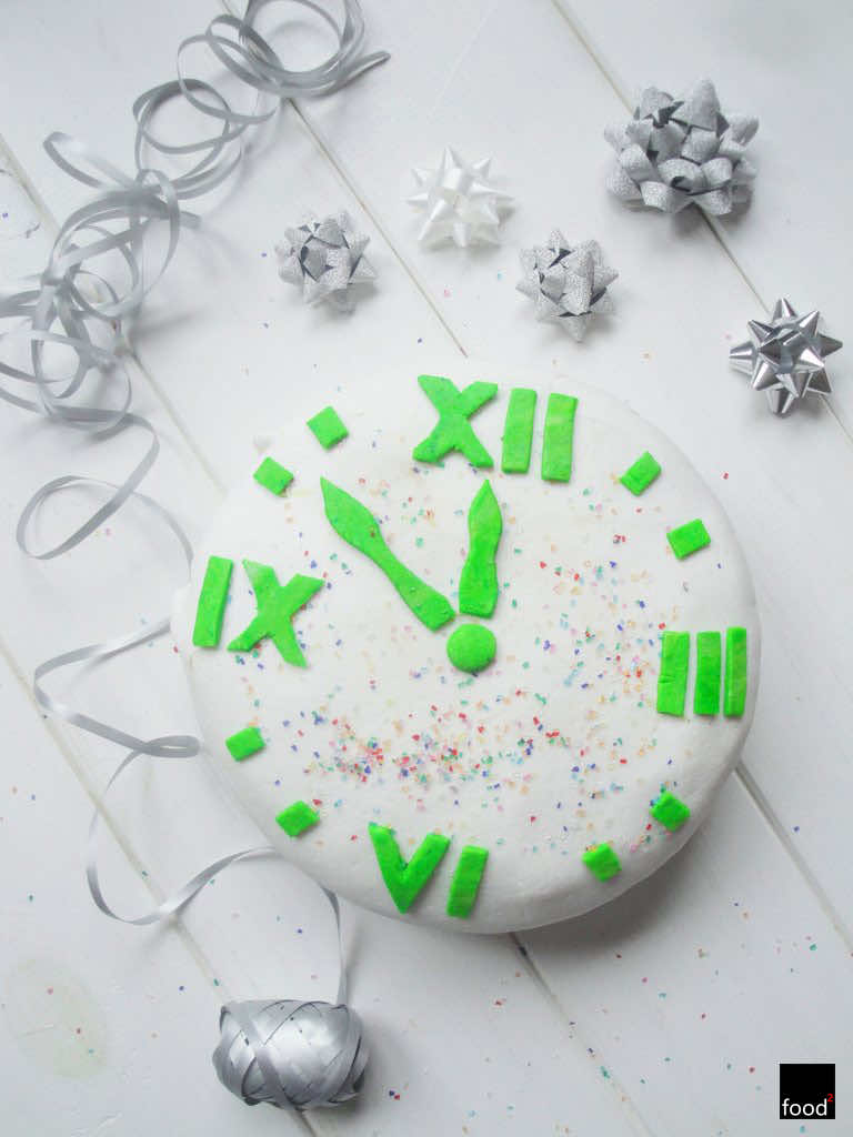 Biszkopt przełożony kremem budyniowym i malinową konfiturą z dekoracją z lukru plastycznego.