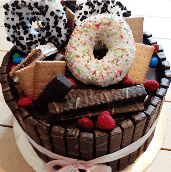 Przepis na pyszny torcik na jasnym biszkopcie, z śmietankowym kremem o smaku wanilii, kwaśną żelką malinową. Całość oblana jest polewą czekoladową i udekorowana słodkościami. Zachęcam do wypróbowania przepisu!