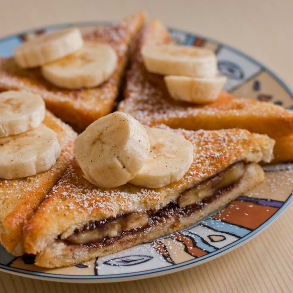 Szybki pomysł na śniadanie czyli francuskie tosty z bananami .Pprzepis dla miłośników porannych słodyczy na śniadaniowym stole.