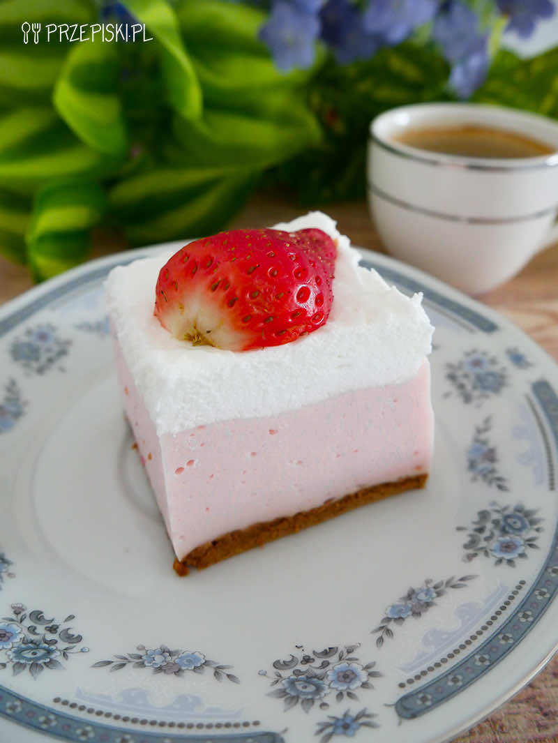 Ciasto truskawkowy puch to bardzo smaczne i szybkie w przygotowaniu ciasto. Delikatna masa na bazie galaretki truskawkowej i śmietanki kremówki to prawdziwy raj dla podniebienia. To ciasto wręcz rozpływa się w ustach!