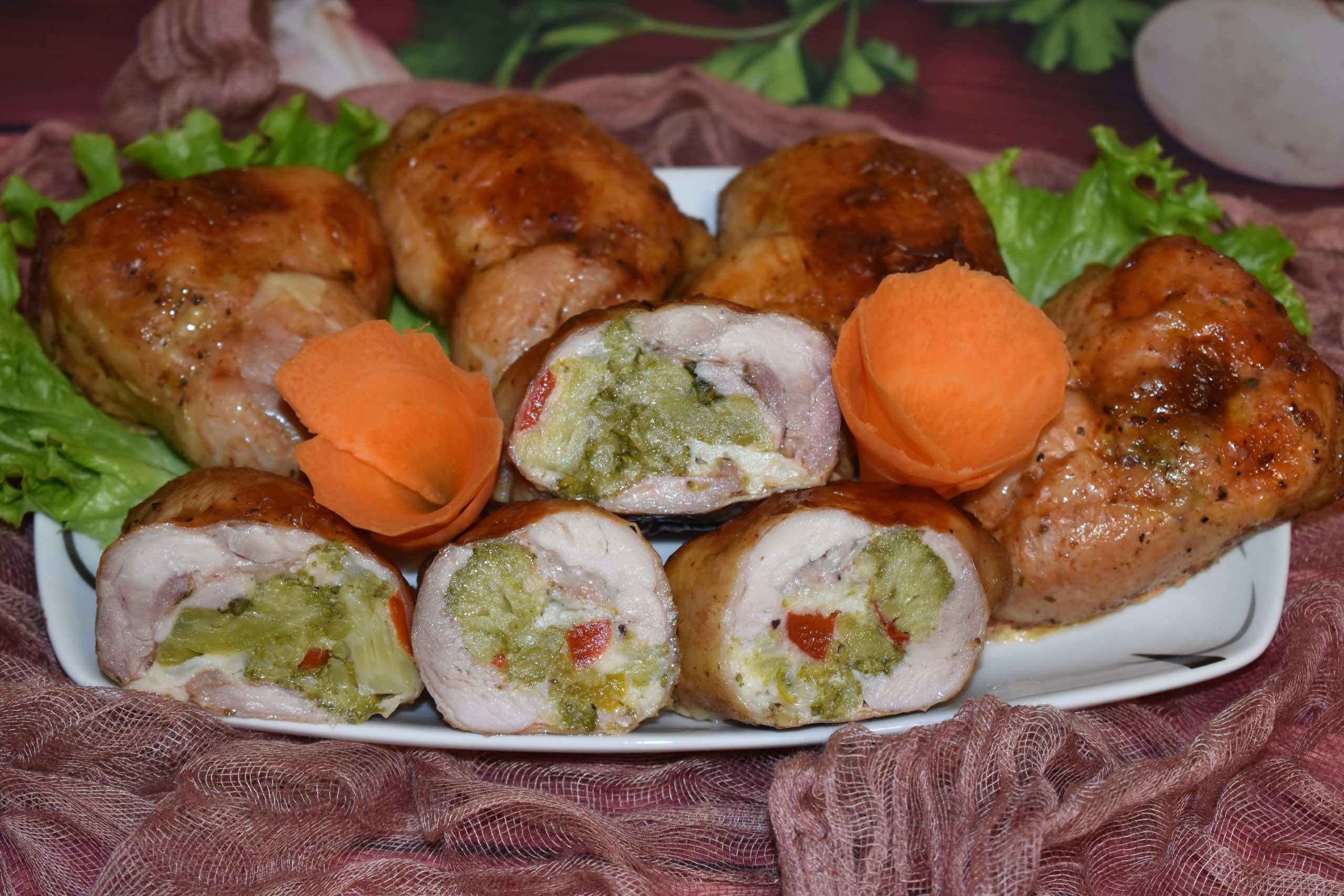 Pieczone mięso z kurczaka w aromatycznej przyprawie czosnkowo ziołowej z farszem z brokuł. Danie, które zachwyci gości.