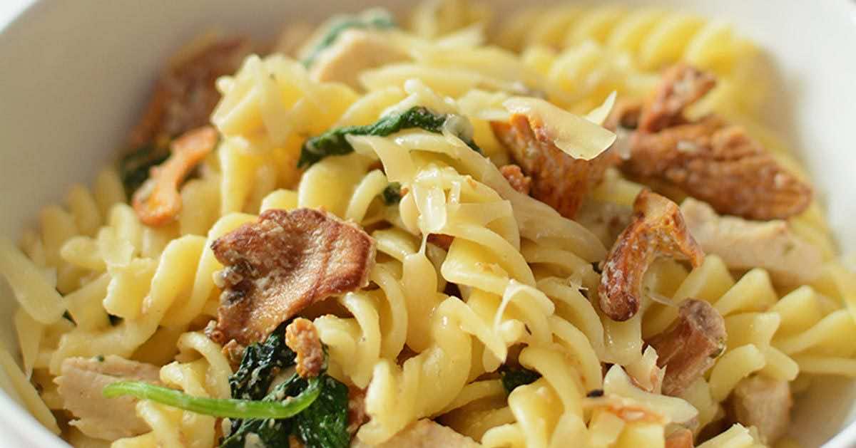 Prosty makaron z kurczakiem i kurkami