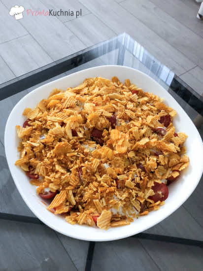 Sałatka z chipsami będzie idealnym wyborem na domowe imprezy czy spotkania w gronie znajomych. Z pewnością każdy gość będzie zachwycony jej smakiem. Zapraszam na przepis.