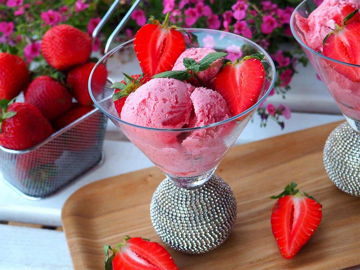 Domowe lody truskawkowe w wersji FIT: – bez śmietanki, – bez jajek, – bez cukru. Są to wegańskie lody przygotowane na bazie mleczka kokosowego oraz kokosowego jogurtu naturalnego. Słodzone są syropem z agawy, ale równie dobrze można posłodzić je miodem.