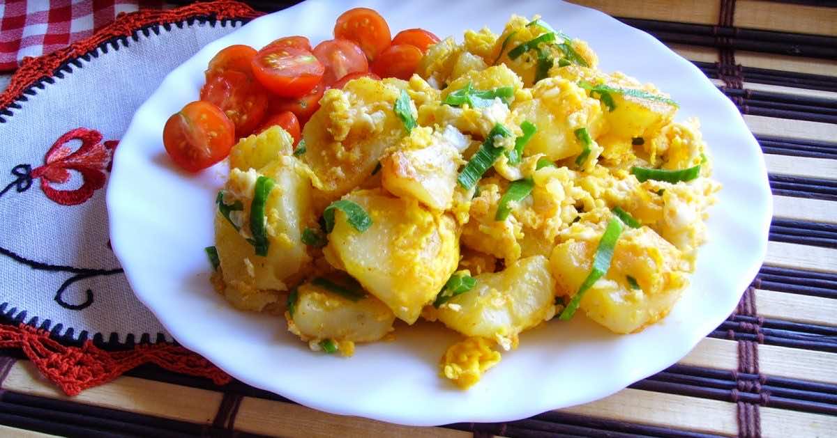 Zapiekane ziemniaki z jajkami i zieloną cebulką