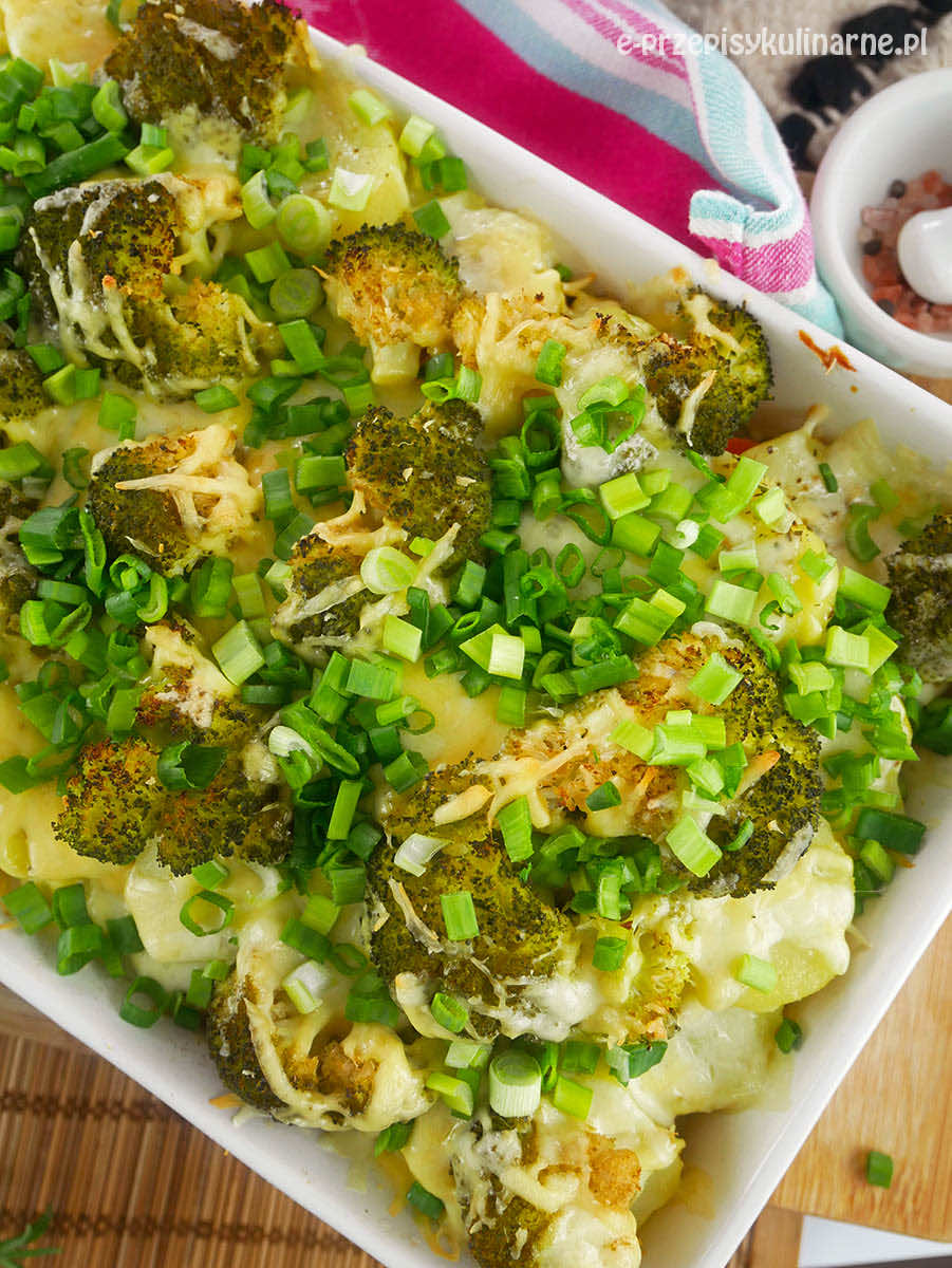 Zapiekanka z ziemniaków kiełbasy i brokuła