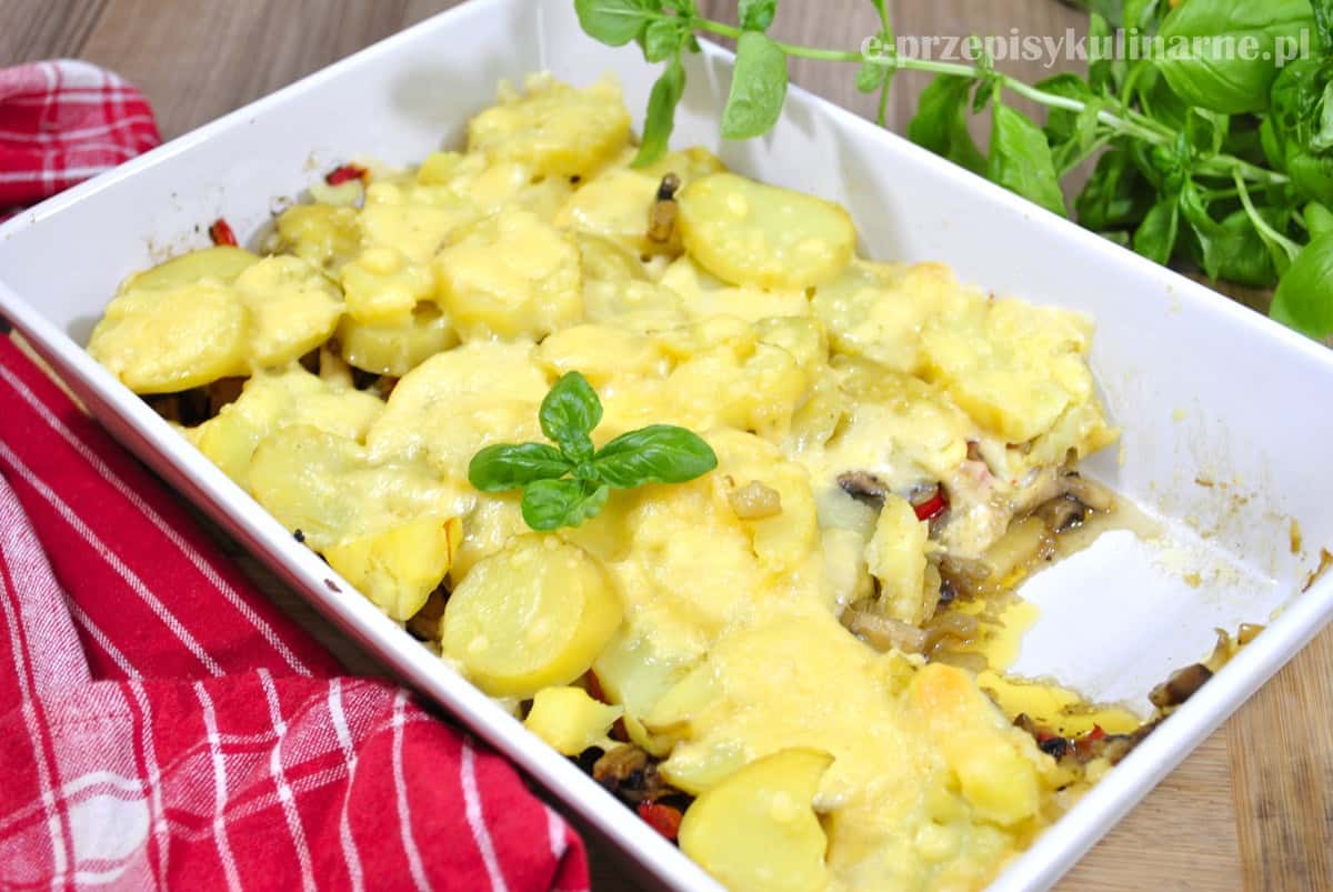Bezmięsna zapiekanka ziemniaczana z pieczarkami to dobry pomysł na szybki i tani obiad. Danie jest pyszne, aromatyczne i treściwe.