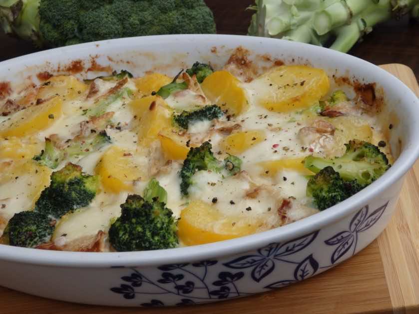 Pyszna i sycąca, bezmięsna zapiekanka z dwóch warzyw- ziemniaków i brokuła. Do tego zestawienia dorzuciłam jeszcze serek camembert ale może być także pleśniowy typu lazur lub gorgonzola. Dla mnie pycha :)