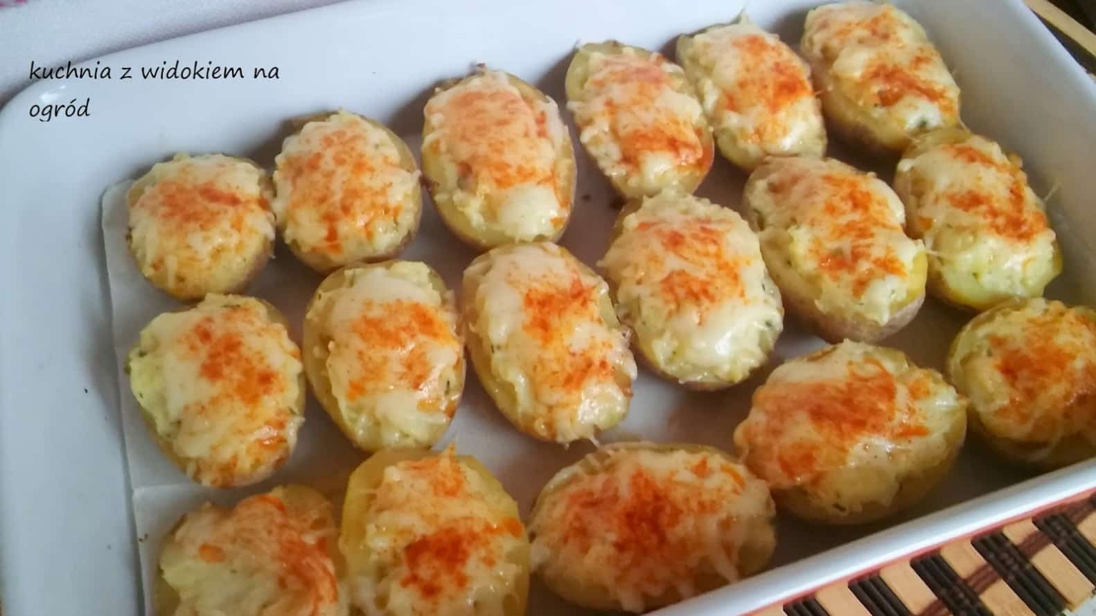 Ziemniaki faszerowane, mocno serowe, zapiekane w piekarniku.
