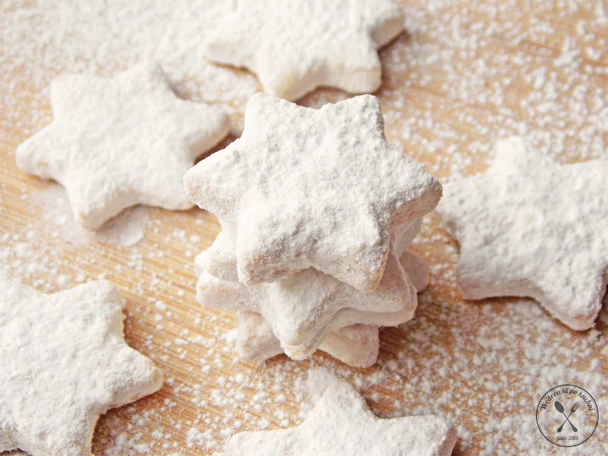 Święta Bożego Narodzenia to taki magiczny czas przesycony dobrocią, miłością, spokojem, otwartością na drugiego człowieka. Nastrój ten podkreślają przystrojone różnokolorowymi lampkami ulice, domy i drzewa, barwne wystawy sklepowe, kolorowe choinki. W oczekiwaniu na pierwszy śnieg i ten magiczny dzień upiekłam kruche gwiazdki, obtoczone białym puszkiem z cukru pudru. Cudownie umilają nam ten przedświąteczny czas.