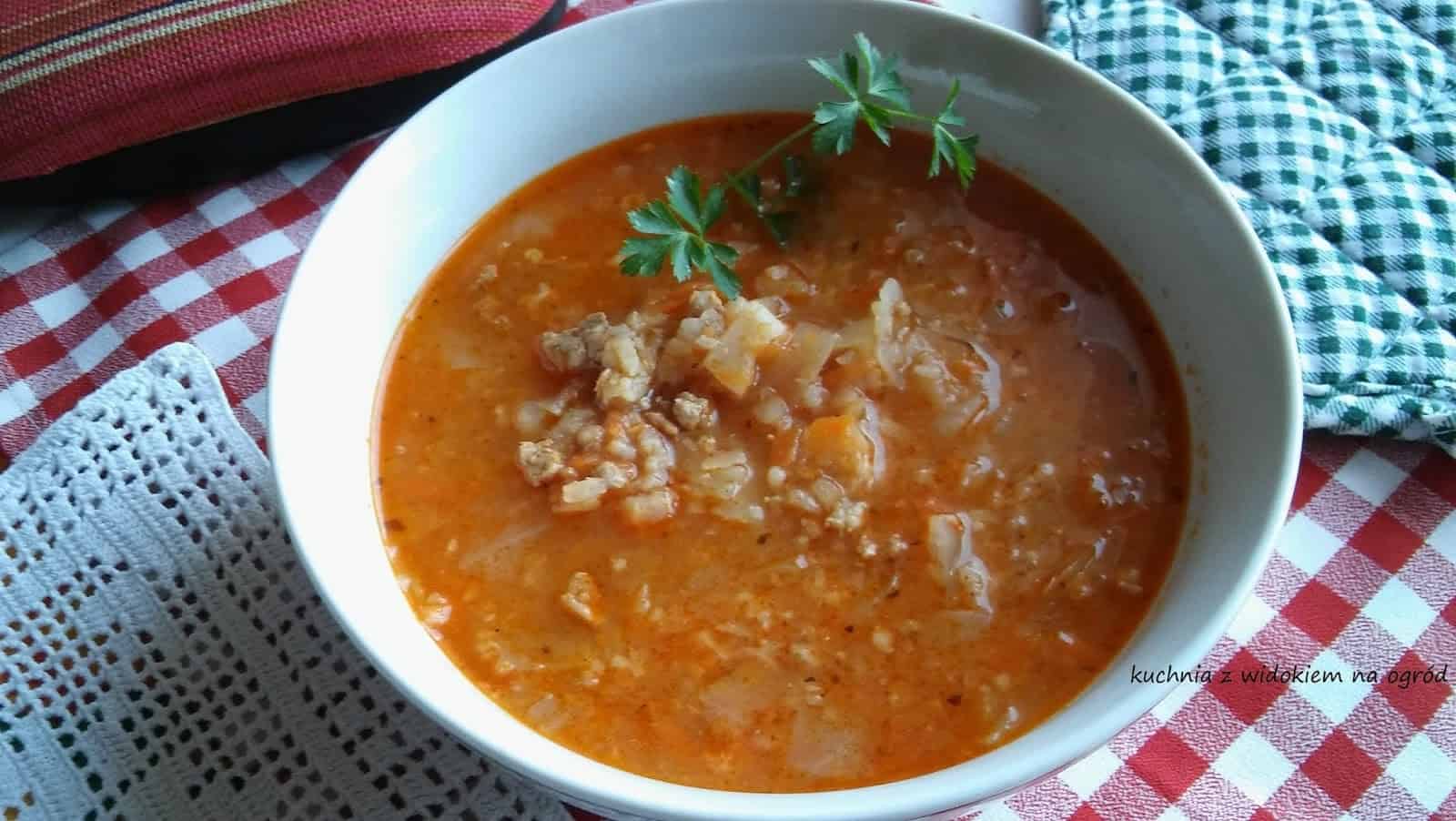Zupa gołąbkowa. Pożywna, gęsta zupa o smaku gołąbków.