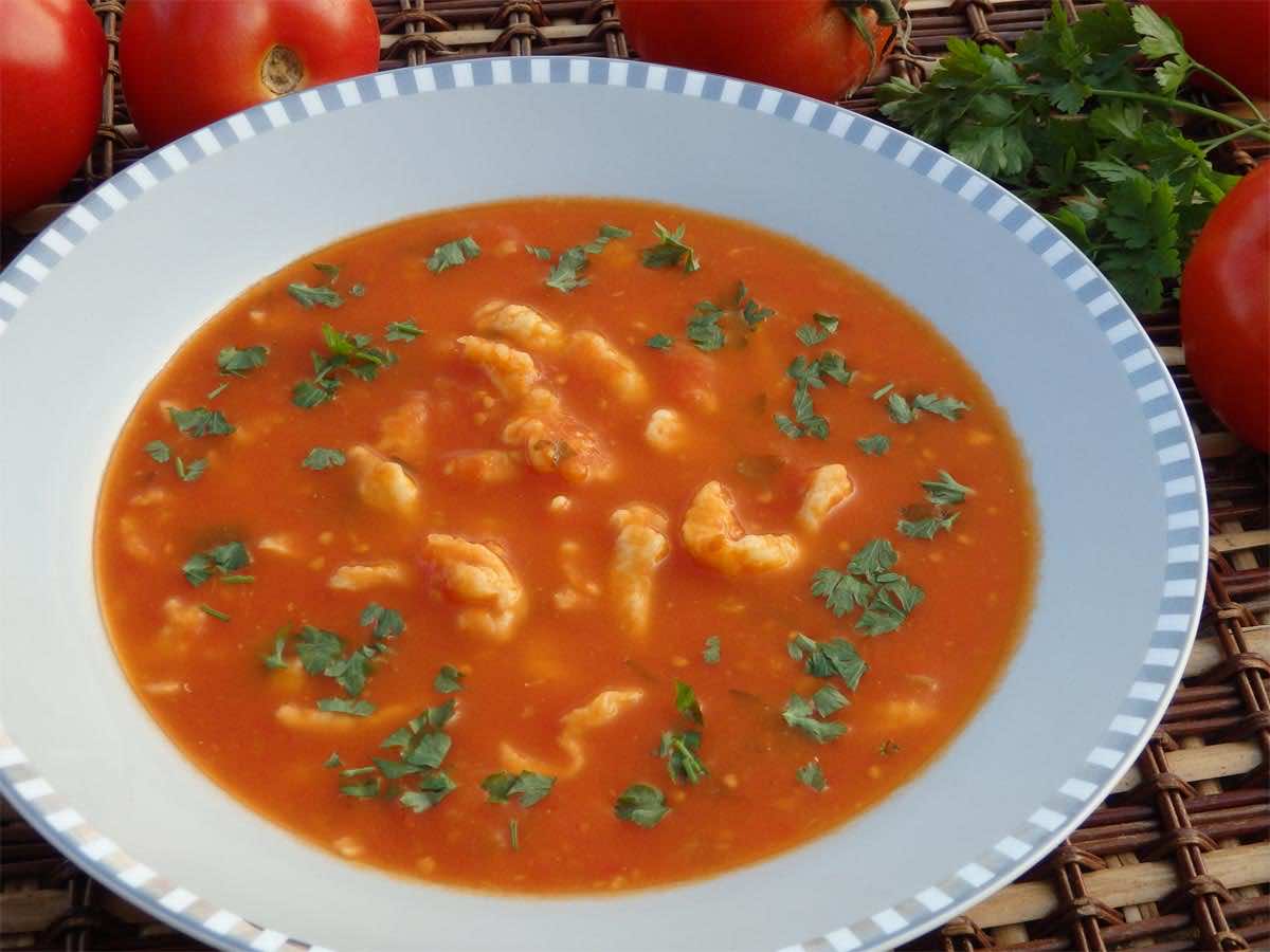 Korzystam z przepysznych pomidorków i zrobiłam zupkę pomidorową tym razem z lanymi kluskami. Kluski lane od niedawna w mojej kuchni bo jeszcze nigdy nie robiłam ale tak bardzo mi się ich chciało więc kilka prób poczyniłam no i wyszły. Gęsta pomidorowa do tego pyszne kluseczki i czego chcieć więcej.