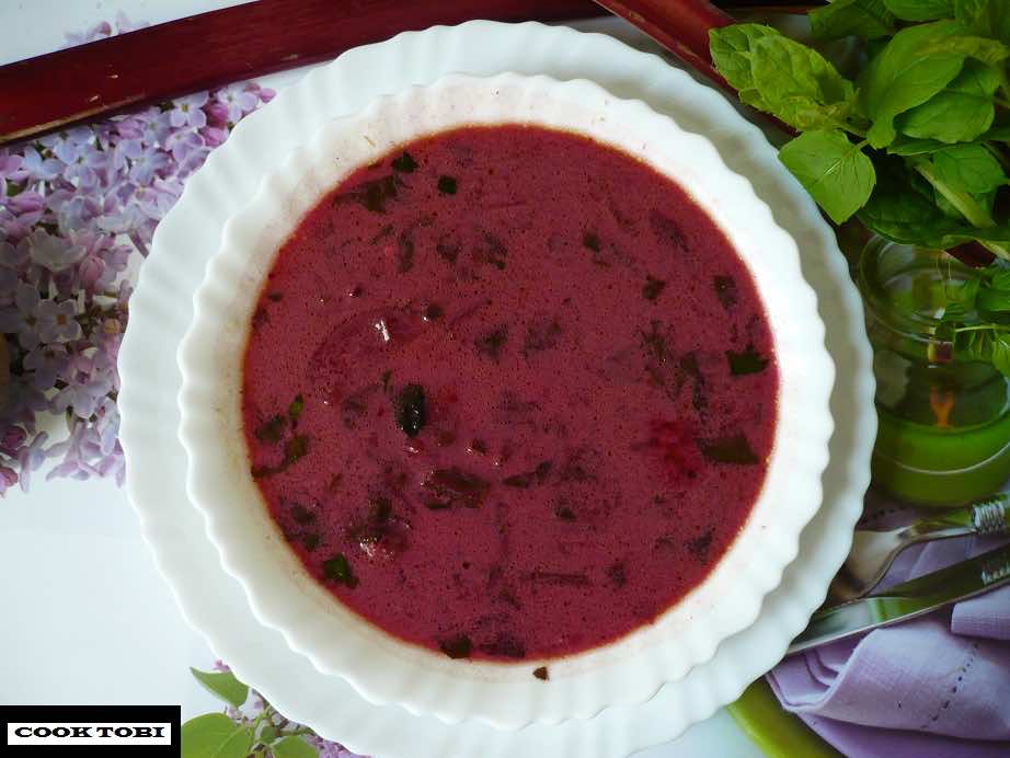 Skoro majówka to i botwinka z rabarbarem w sklepie :). Nigdy nie myślałem łączyć tych dwóch składników ale dziś pomyślałem że zaryzykuję. Absolutnie spontanicznie również nawinęła się świeża mięta i generalnie zupa jest bardzo interesująca. Oczywiście rabarbar i mięta są tylko dodatkami więc gdzieś ich aromat się przebija pośród niezapomnianej botwinki. Jeśli chodzi o zdrowie to co ciekawe rabarbar należy do kluczowych roślin leczniczych w Chinach, zawiera naturalne przeciwutleniacze oraz witaminy A, E, C czy też mangan. Botwina to rewelacyjny środek na odkwaszenie organizmu, ma działanie łagodzące stres, świetnie działa na skórę. Botwinka to również duże ilości błonnika które wraz z miętą świetnie wspomogą układ trawienny i jelita. Zupa ta również jest mocno FIT bo jedynie śmietana i masło ma jakąkolwiek znaczącą ilość kalorii. POLECAM przygotowanie jej póki jest okazja!